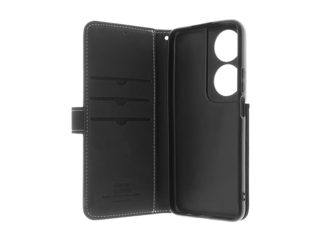 Insmat - Vikbart fodral för mobiltelefon - genuint läder, bomullssömmar, kartong+papper+aluminiumfolie, termoplastisk polyuretan (TPU) - svart - för Honor X7A 650-3240