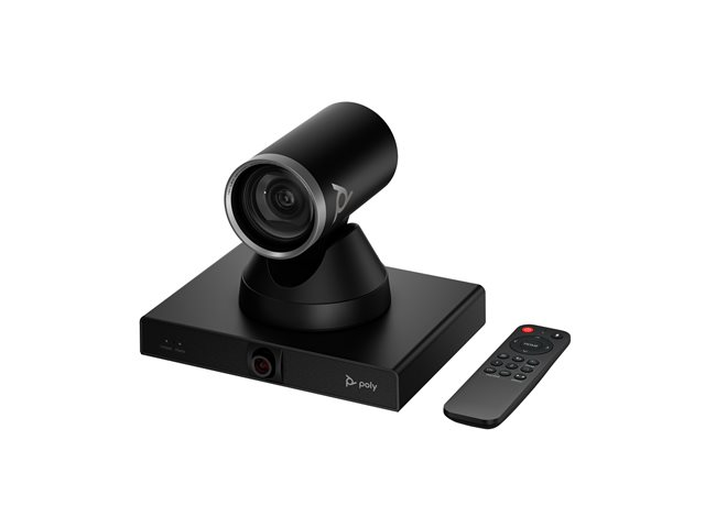 EgenskaperMotoriserad panna, motoriserad lutning, motoriserad zoomning, dubbel lins, 71° horizontal field of view (PTZ camera), 107° horizontal field of view (panoramic camera), 42.7° diagonal field of view (PTZ camera), up to 8 m camera range, Group framing, presentatörsspårning, Poly DirectorAI-teknik