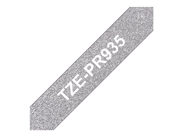 Brother TZe-PR935 - Vit utskrift på premium, glitter silver - Rulle (1,2 cm x 8 m) 1 kassett(er) bandlaminat - för P-Touch PT-P900Wc; P-Touch Cube Pro PT-P910BT