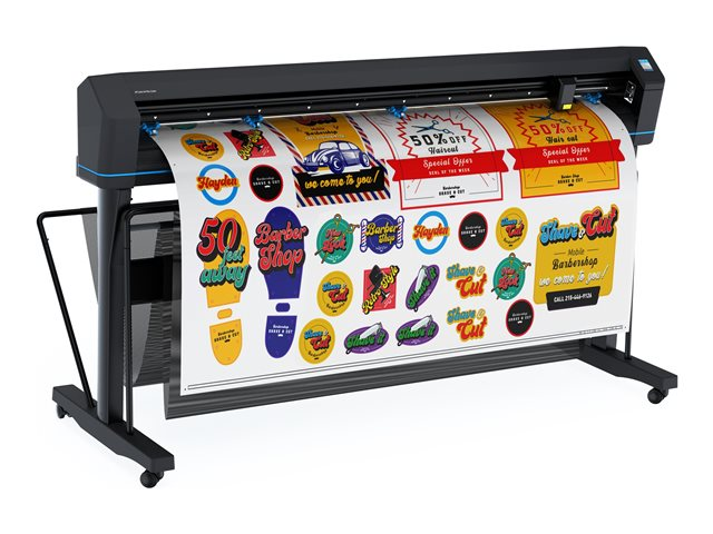 | Förpackningens innehåll | Avskärningskniv, 2 x mediaflänsar, ställ, styrmjukvara för HP Cutter, HP FlexiPrint and Cut RIP, skärare, mediafack, standardhållare, 2 x standardblad |