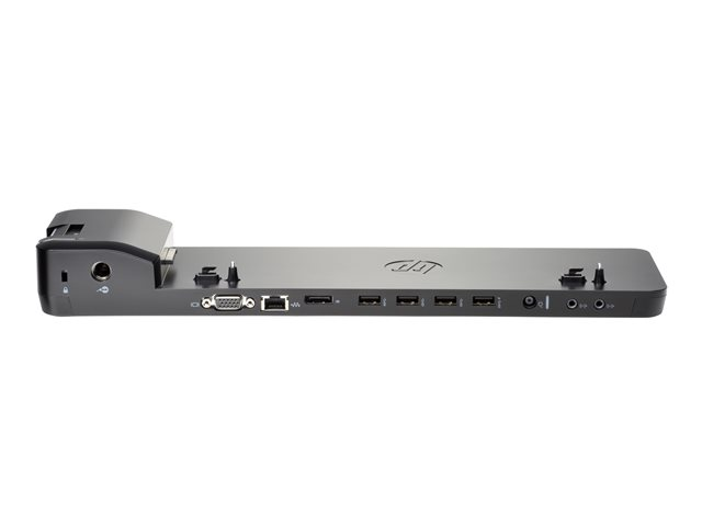 HP UltraSlim Docking Station är designad speciellt för ultratunna bärbara HP Elitebook-datorer (upp till G6-generationen) och expanderar bildskärmen, nätverket och enhetsanslutningarna så att ni kan vara mer produktiva hela dagen – allt via en sidodocka där datorn enkelt glider in med ett klick.