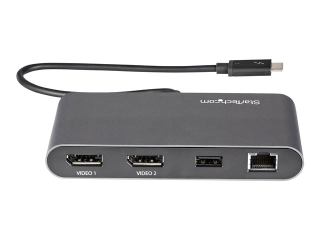 StarTech.com Thunderbolt 3 Mini Dock - Portable Dual Monitor w/ DP 4K 60Hz - 2X USB-A Hub (3.2/2.0), GbE - 28cm Cable - TB3 Multiport Adapter - Mac/Windows - Upgraded Version of TB3DKM2DP (TB3DKMDPL) - Dockningsstation - Thunderbolt 3 - 2 x DP - 1GbE TB3DKM2DPL